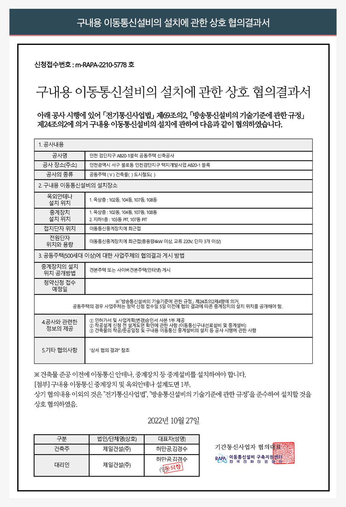 이동통신설비 협의결과서
